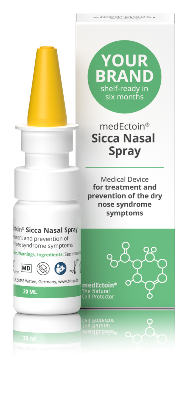 Nasal spray for symptomatic treatment and prevention of dry nose syndrome.